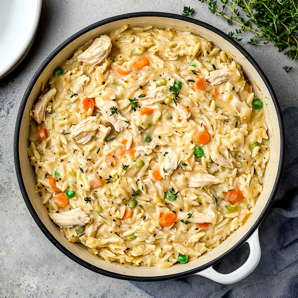 Cozy Creamy Chicken Pot Pie Orzo Recipe for Dinner