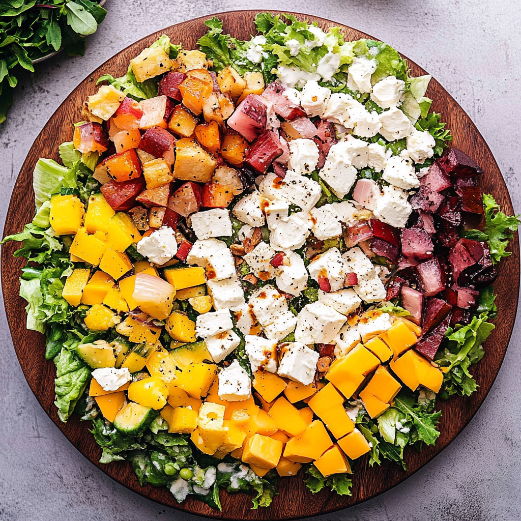 A hearty salad packed with roasted butternut squash, crisp apples, and a delightful maple balsamic vinaigrette, perfect for fall gatherings.